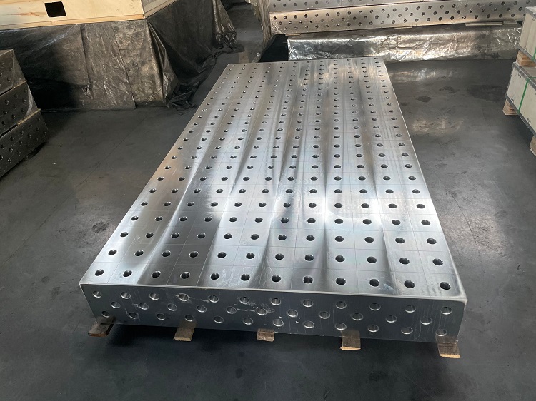 一批三维柔性焊接平台整装待发,已完成精度检测、表面防锈处理与加固包装。